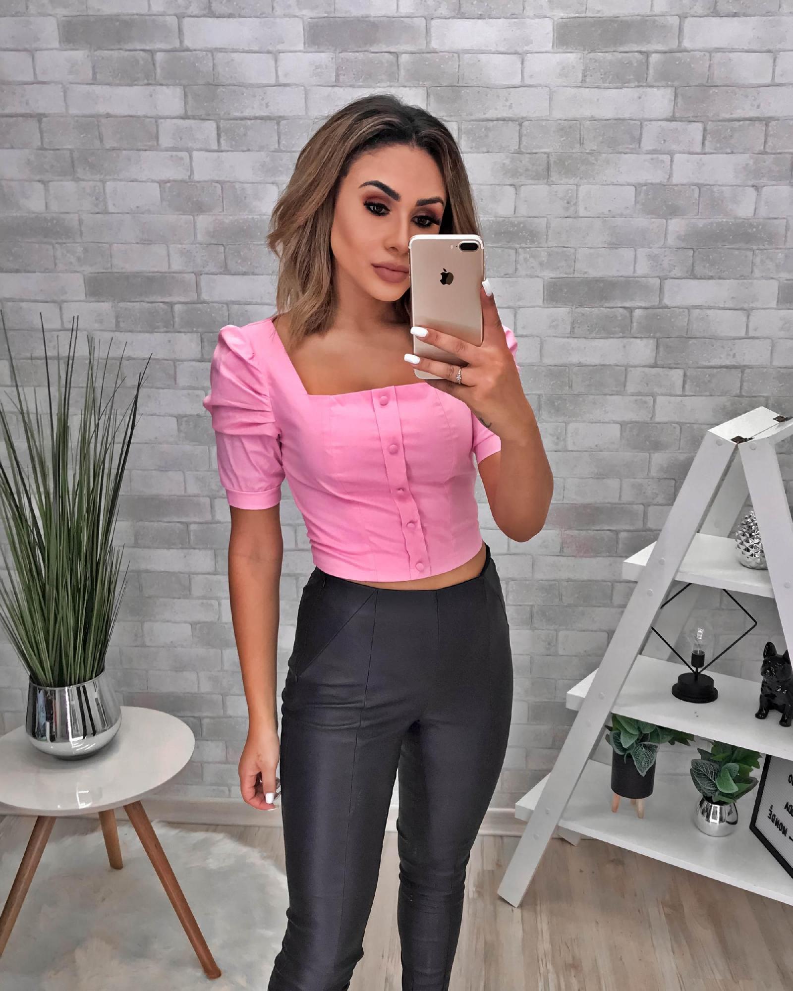 Detalhes: Cropped decote u botao manga princesa 97% algodão 3% elastano